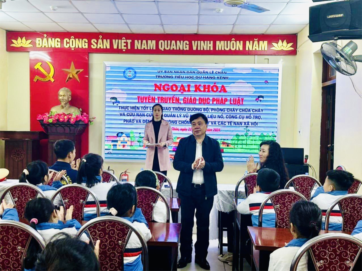 Nhằm tăng cường công tác tuyên truyền, giáo dục, phổ biến kiến thức pháp luật về an toàn giao thông và phòng cháy chữa cháy, cứu hộ cứu nạn, Trường Tiểu học Dư Hàng Kênh phối hợp với Cảnh sát Phòng cháy và chữa cháy (PCCC) và Phòng Cảnh sát Giao thông công an quận Lê Chân tổ chức tuyên truyền các quy định về an toàn PCCC và an toàn giao thông (ATGT) cho cán bộ, giáo viên và hơn 1000 học sinh của Trường.