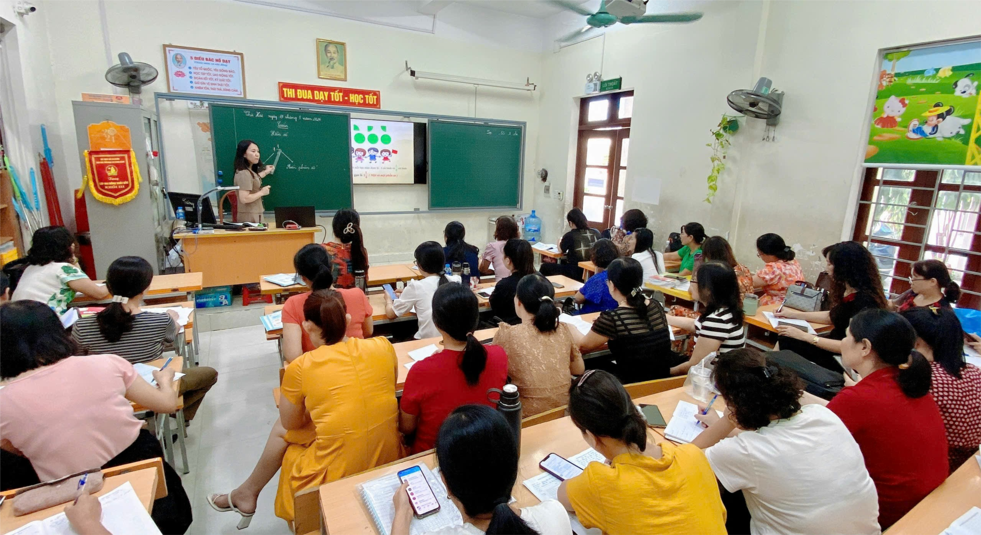 Sau phần báo cáo của hai cô giáo là phần trao đổi, thảo luận của tất cả giáo viên toàn trường. Dưới sự điều hành của hai đồng chí Phó Hiệu trưởng Hoàng Thị Hiền và Vũ Thị Thúy, giáo viên các tổ khối đã đưa ra rất nhiều ý kiến bổ sung và chia sẻ để làm rõ về những điểm mới cần lưu ý trong việc triển khai thực hiện dạy môn Toán và Đạo đức lớp 5 theo chương trình GDPT 2018.