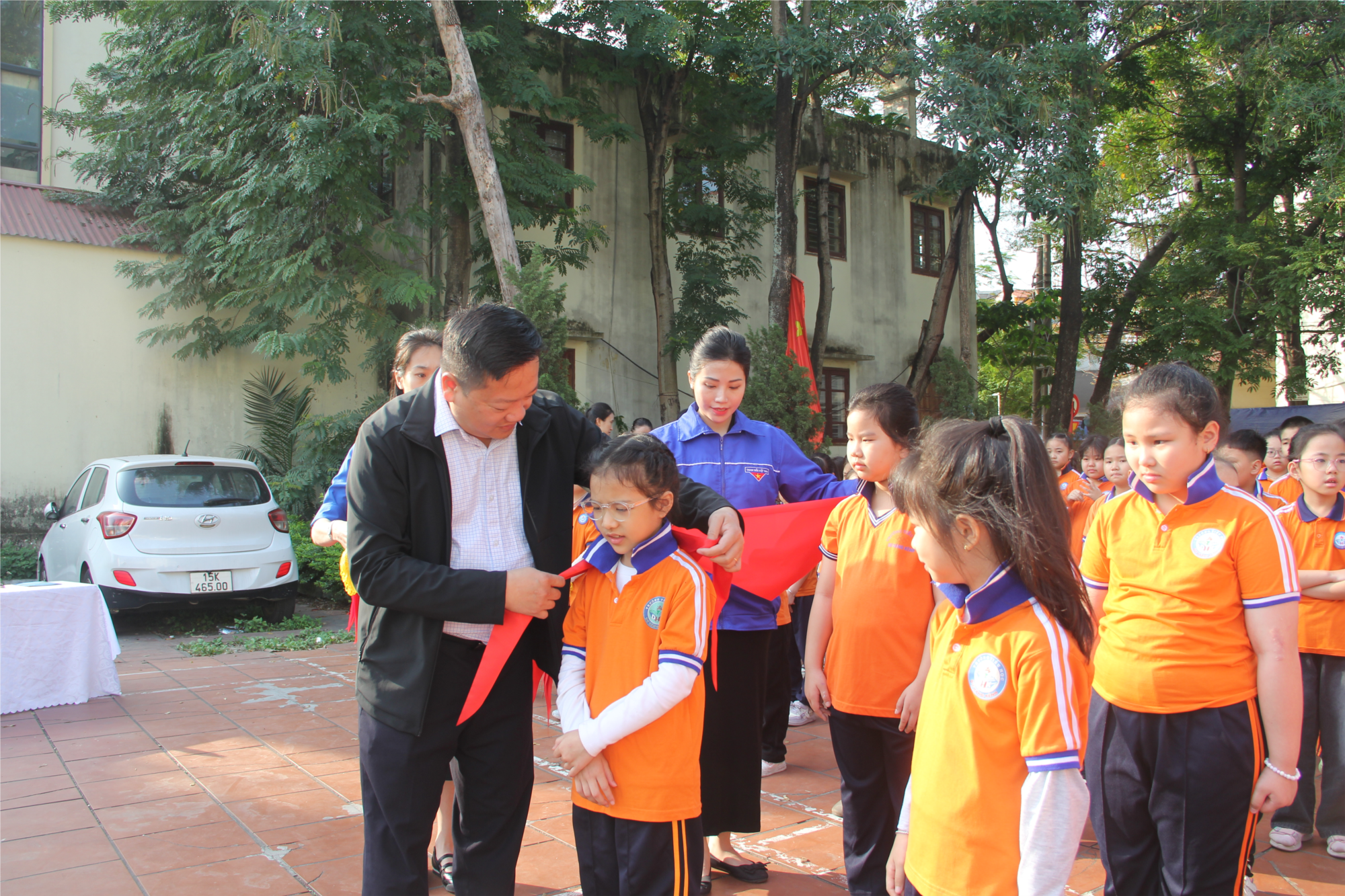 Sau nghi thức dâng hương, Liên đội đã long trọng tổ chức Lễ kết nạp đội viên mới cho các em học sinh khối 3. Trước anh linh các anh hùng liệt sĩ và dưới lá cờ Tổ quốc, cờ Đội thiêng liêng, các em học sinh vinh dự được đeo chiếc khăn quàng đỏ thắm – biểu tượng của Đội Thiếu niên Tiền phong Hồ Chí Minh. Trong giây phút thiêng liêng ấy, các đội viên mới đã đọc lời hứa đội viên, thể hiện quyết tâm học tập, rèn luyện tốt để xứng đáng là con ngoan, trò giỏi, cháu ngoan Bác Hồ.