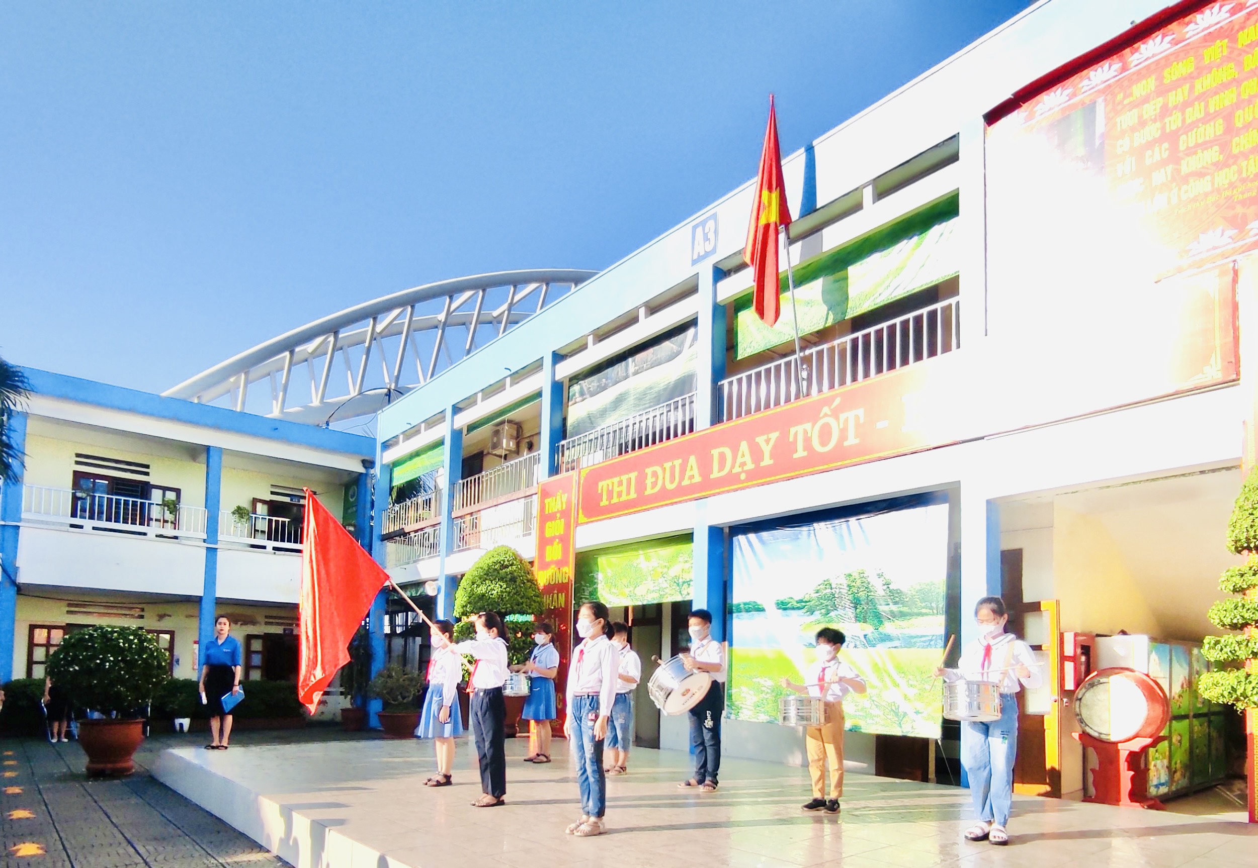 Phần nghi lễ chào cờ, hát Quốc ca, Đội ca diễn ra trong không khí trang nghiêm. Sau phần nghi lễ là phần sơ kết các hoạt động Đội tháng 10 với chủ đề “Chăm ngoan học giỏi”.
